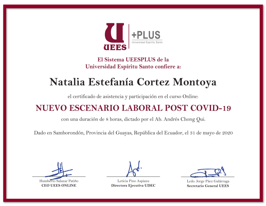 Magister en Dirección de Empresas. IDE Business School, Ecuador, 2021.